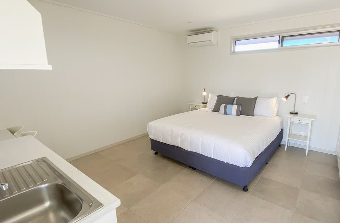 The rooms are well decked out for a comfortable stay. Each room includes either a king bed or two singles, a private bathroom, AC, desk, TV, fridge, microwave, kettle, toaster, plates, glasses, cutlery etc – so everything you need to be able to prepare basic meals. For families, you can also arrange to have two adjoining rooms.