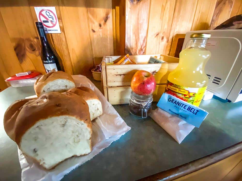 On arrival, a breakfast hamper is provided, which is full of what you need for your stay. Our hamper included a few loaves of homemade bread, a bottle of juice, a small bag of cereal per person per day, butter, jam and 3 pieces of fruit. My only thoughts on the breakfast hamper is that it would be nice if fresh bread was provided each morning rather than all at once on arrival. By the second morning, the bread was hard – but still fine if you’re just after toast.