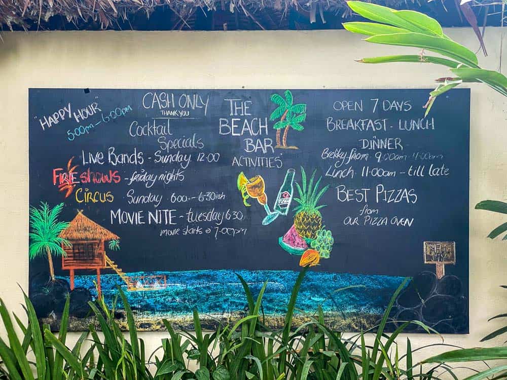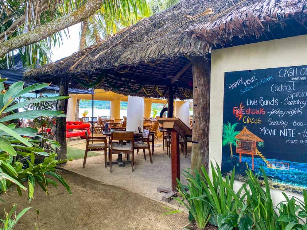 - Are happy to eat at the same place over and over again – or happy to take a bus or taxi into town – there are no other places to eat on the island or closeby by on the mainland expect for The Beach Bar which is on the mainland;